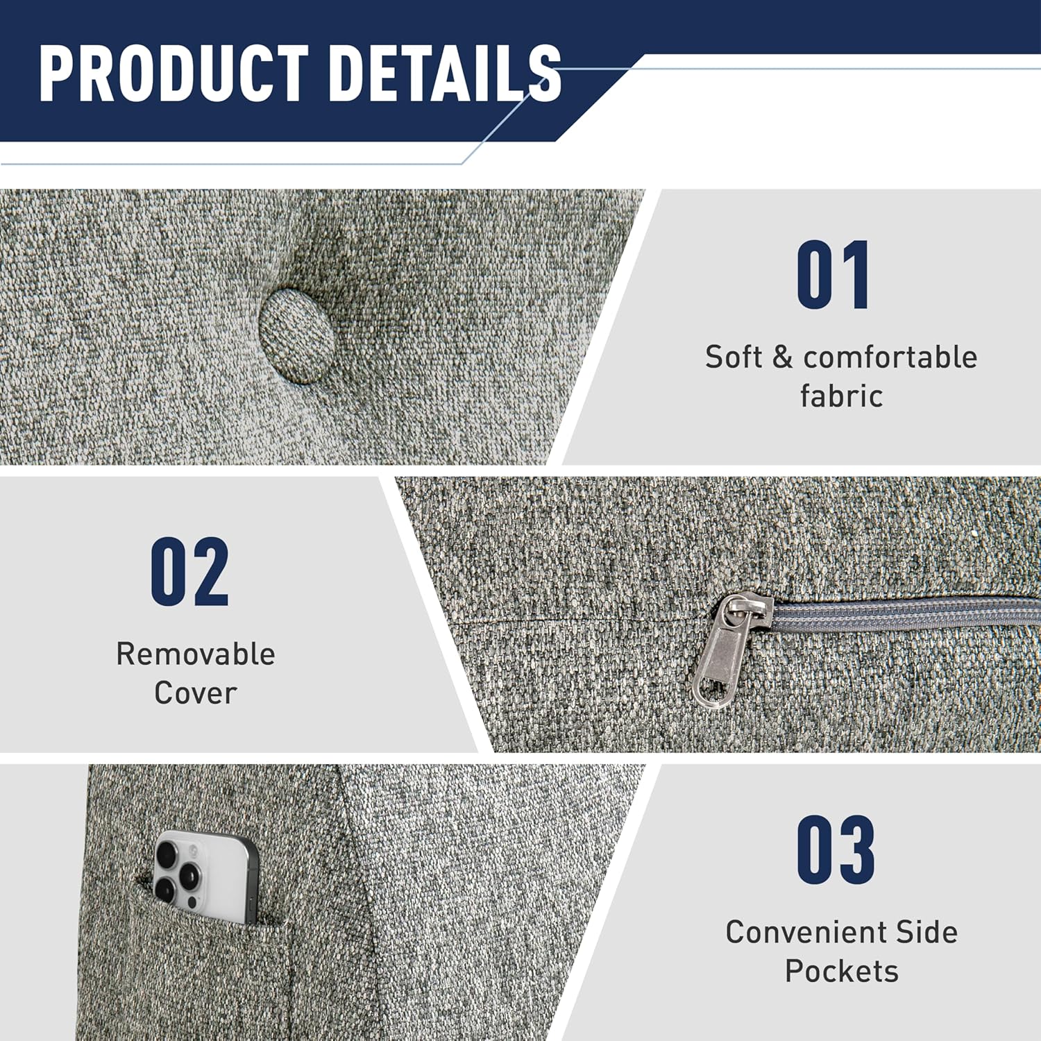 Cleaning the cover couldn’t be simpler; just unzip, remove, and machine wash. The reading pillow also features side pockets for storing small items such as a cell phone or TV remote, making it a handy storage solution for your home.