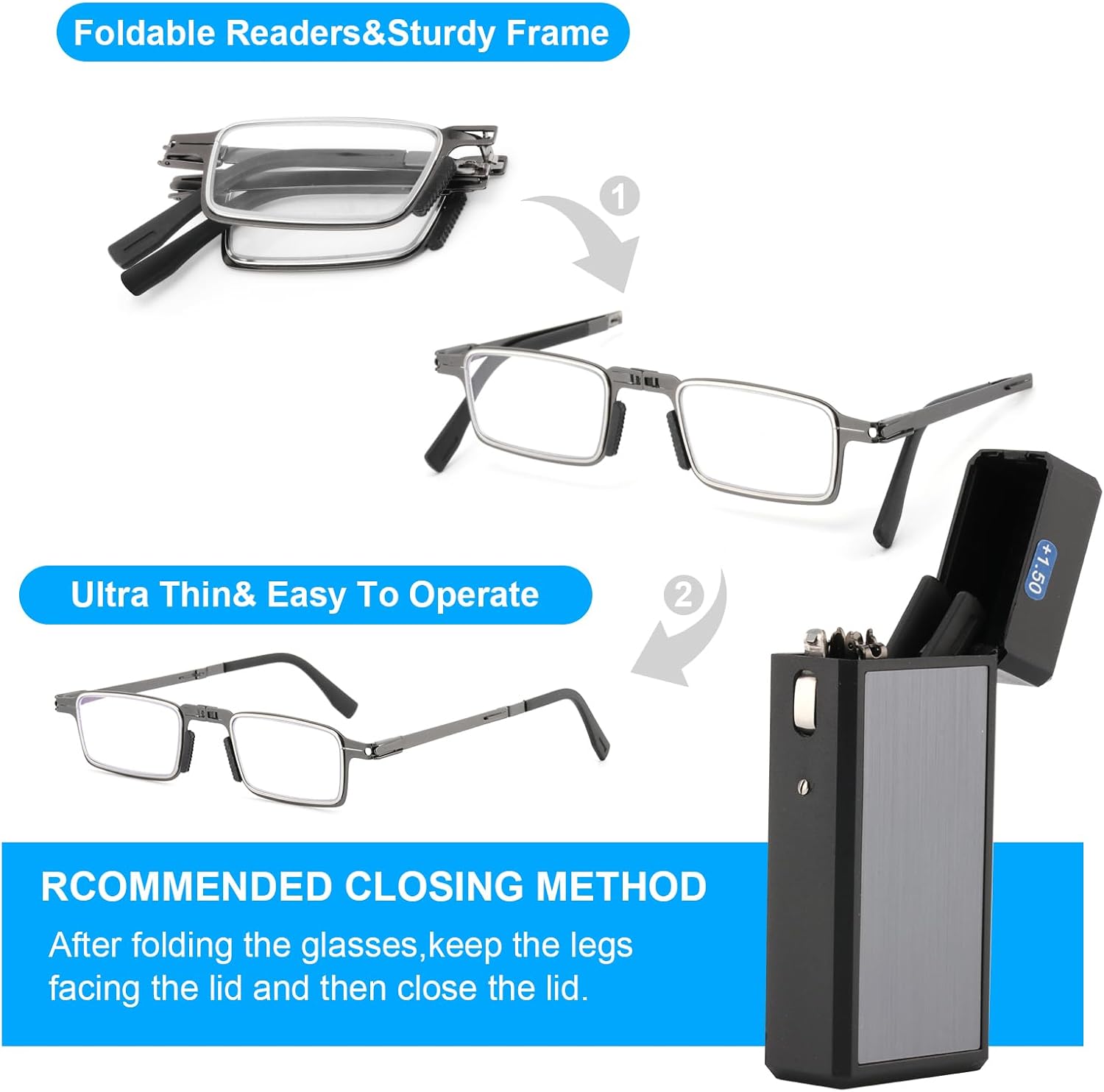 Durable Ultra Thin and Lightweight Folding Reading Glasses