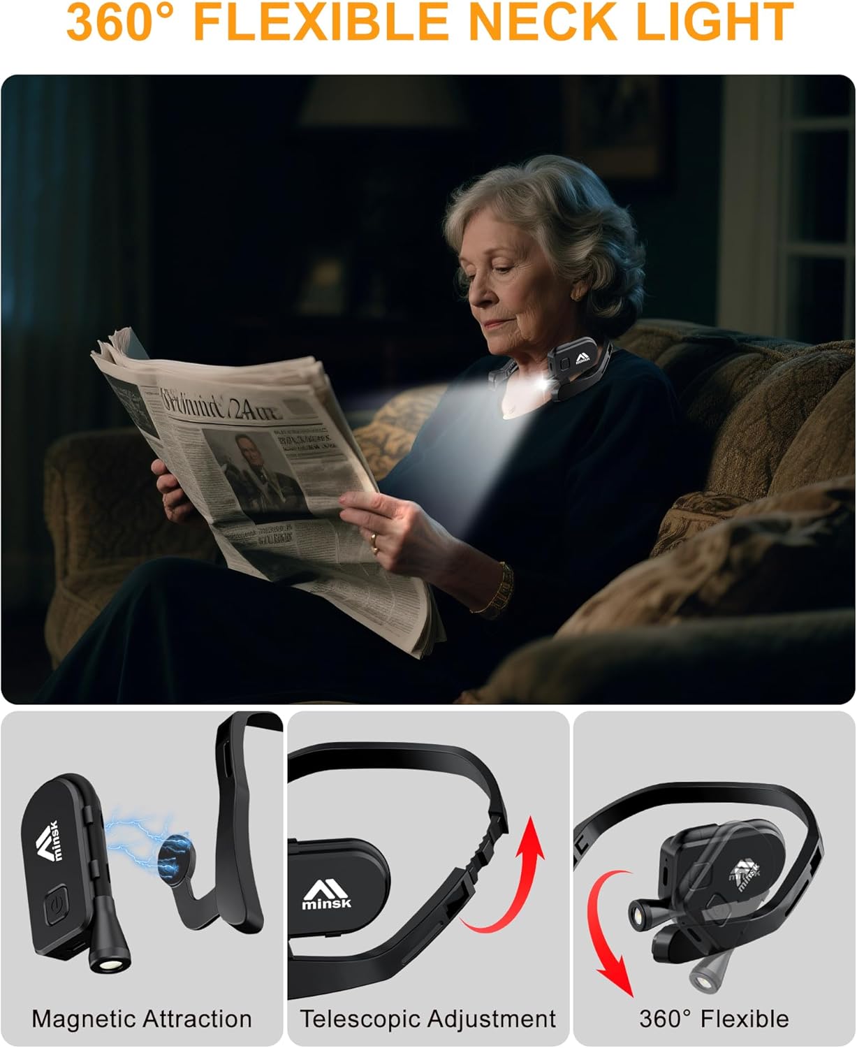Enjoy hands-free illumination with full 360° flexibility with Minsk Flexible Neck Reading Light!